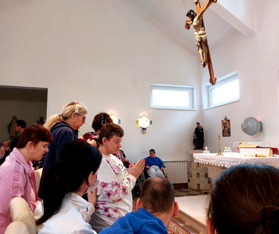 A na misi? Nema tu mjesta velikim riječima, kićastim pobožnostima. Pred Isusa dolaze takvi kakvi jesu jer se nisu naučili pretvarati da su nešto što nisu. Kako se opominju u dnevnom boravku, tako i u kapelici. Kako si pomažu u kuhinji, tako i u kapelici. Čini se da oni žive svjesni da je Bog isti gdje god da se nalaze.