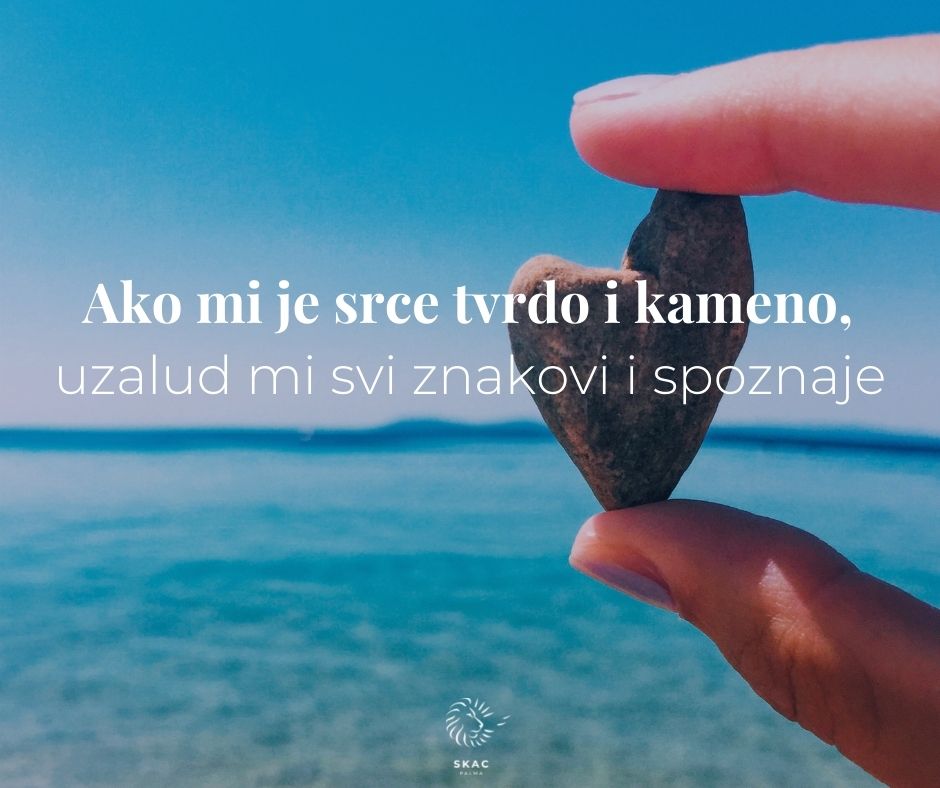 Gospodine, oprosti mi. Oprosti mi što farizej u meni stalno dolazi do Tebe i konstantno traži znakove i čudesa. A kuda će me to sve odvesti? Što mi znači taj znak? Hoće li mi znakovi pomoći da promijenim i uredim svoj život na bolje i da odlučim da za Tebe živim. Ako mi je srce tvrdo i kameno, uzalud mi svi znakovi i spoznaje o postojanju. Ti od mene tražiš jedno, da ti u jednostavnosti dolazim svaki dan. Da gradimo odnos zajedno, da tražim Tebe i tvoj pogled na mene. Da sjednem do tvojih nogu i slušam što ti meni imaš za reći. Da ne bježim, nego ti dođem kad mi se najmanje da jer baš tada ti želiš biti sa mnom.