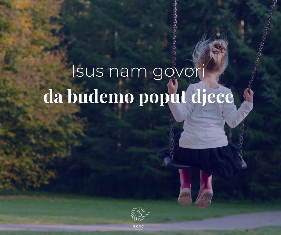 Isusovo razumijevanje za učenike i njihova pitanja uvijek me oduševe. Baš poput roditelja koji poučava svoju djecu. I baš danas kad Isus govori da trebamo biti poput djece sjetila sam se svoje malene nećakinje. Njezina jednostavnost i iskrenost uvijek me oduševe. Ne pamti zlo, a ljubav je uvijek spremna dati. Čak i u situacijama kada očekujem da će se ljutiti ili uzeti nešto za zlo ona uvijek prvo pristupa s osmjehom i ljubavi bez obzira na to što je bilo jučer. Nema kod nje onog odraslog ponosa koji mi često smeta na putu do iskrenosti ili poniznosti. Ponosa koji izbija ljubav iz srca. I bez obzira na to što ima tek 4 godine od nje zapravo mogu jako puno naučiti. Pravi je primjer kako je ljubav jedini odgovor na sve.