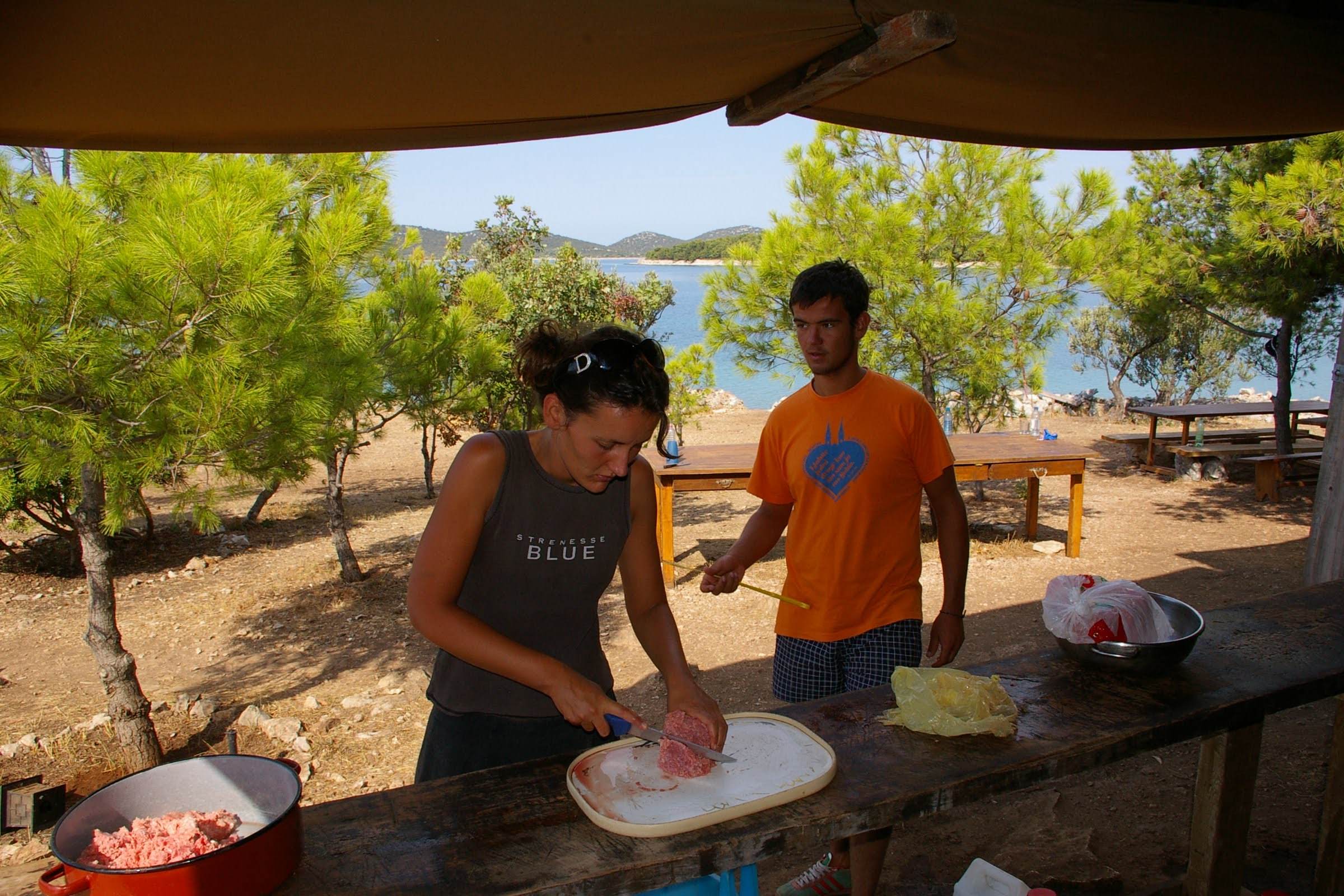 Tajnice SKAC-a bile su drage, ekipa otvorena, p. Volenik je donosio dubinu, p. Musa el presidente mi je bio profesor na faksu i ko neki dobri tata na kontinentu… Ipak, nisam ja htjela ni u Skupštinu ni u ured. Ja sam najsretnija bila na Modravama, spavajuć na paletama, peruć zube u moru i živeći tu neku jednostavnost i stopljenost s prirodom. Najdraže mi je bilo doći do kraja 20 metarskog pontona, leć potrbuške i prat zube u dubini mora. 😀 Ili navečer leć na leđa i promatrat bilijone zvizda… Brzo sam prebjegla iz animatorske skupine u kuhare, jer tako se na Modravama moglo boravit cilo lito. Terezija Klaić me učila kuhati, a Marko Mešin snalazit se u raznim izazovnim okolnostima. To mi je kasnije pomoglo kad sam se konačno dokopala misija.