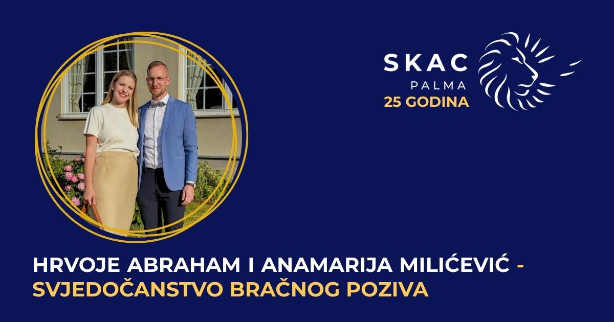 Već gotovo 25 godina SKAC Palma mjesto je susreta mladih, mjesto na kojem Bog piše čudesne i inspirativne priče. Pokušavajući proći i sažeti sve što se događalo u četvrt stoljeća koliko SKAC živi, otkrili smo (zasad) 50 bračnih parova koji su se upoznali na SKAC (kasnije i Magis) programima i aktivnostima. Među njima su i Hrvoje Abraham i Anamarija Milićević. Hrvoje Abraham nam je ispričao njihovo svjedočanstvo.