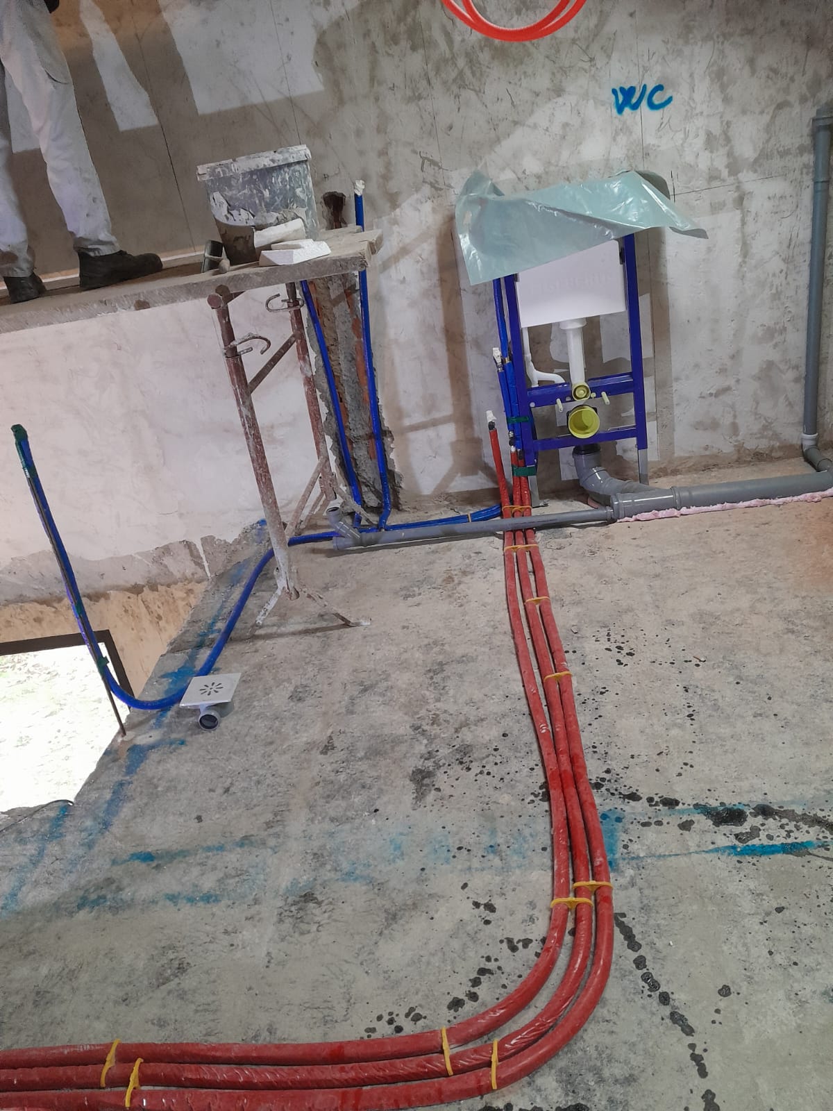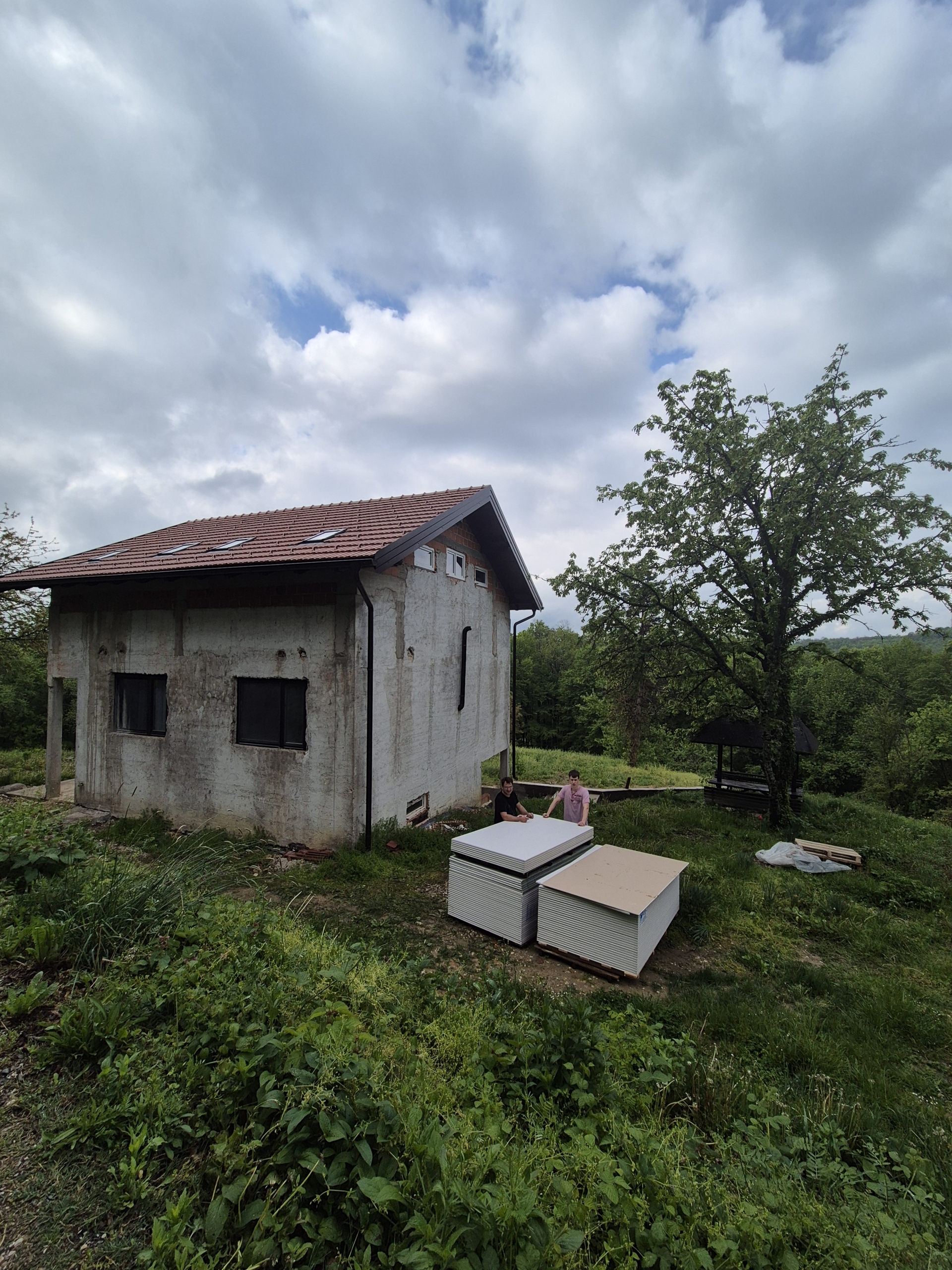 Korak poslije jest postavljanje poda i sanitarija u kupaonicu kako bismo konačno mogli prostor opremiti namještajem, a onda slijedi instalacija klima za grijanje i hlađenje kako bismo mogli adekvatno ugostiti naše prve grupe i stanare dok na red ne dođe podno grijanje u cijeloj kući.