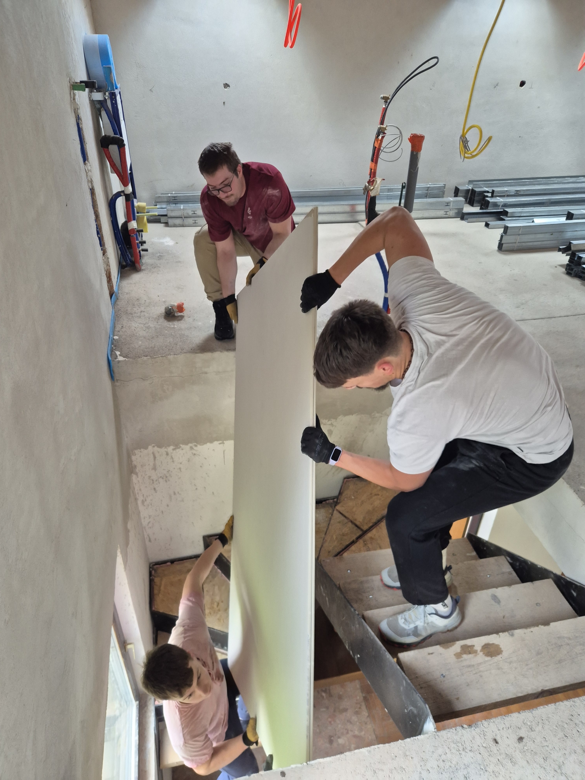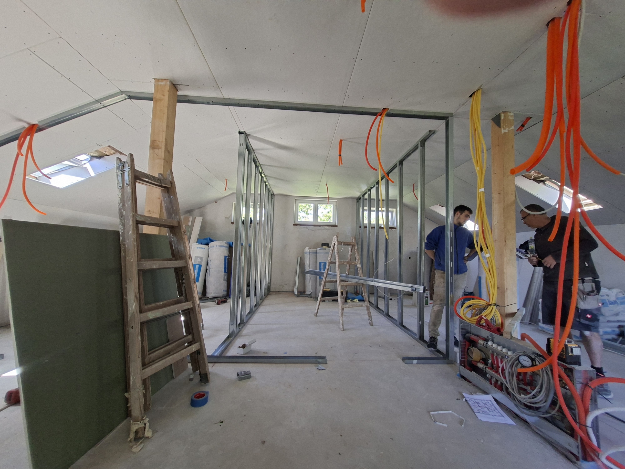 U prosincu smo krenuli s drugom fazom kampanje kako bismo prikupili sredstva za izgradnju i uređenje potkrovlja. Sredinom siječnja ugrađeno je stepenište, srušeni su nepotrebni dimnjaci i postavljeni su dodatni prozori za spavaće sobe. Postavljene su instalacije za podno grijanje i kupaonicu. Kupljen je materijal za postavljanje knaufa i dogovoreni su radovi s majstorima. Paralelno s postavljanjem knaufa, naši vrijedni volonteri postavljaju električne instalacije.