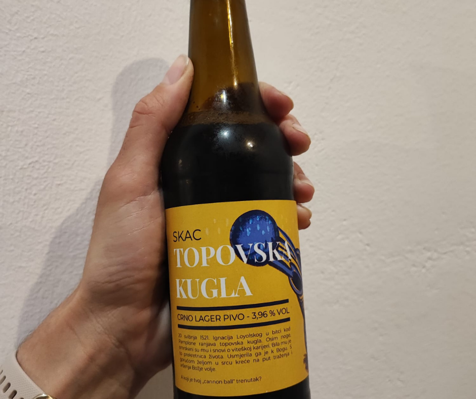 U sjećanju na sv. Ignacija čiju 500-tu godinu obraćenja ove godine slavimo, odlučili smo se za naziv Topovska kugla. Zašto? Zbog želje da ovo pivo uistinu bude više od piva. Željeli smo da bude sredstvo koje će upoznati ljude sa životom sv. Ignacija i potaknuti ih na promišljanje pitanjem:„Koji je tvoj canonball trenutak?“, s nadom da će ih to dovesti bliže Bogu. Jer upravo je topovska kugla, koja iako mu je smrskala nogu i snove o viteškoj karijeri, bila sredstvo kojim je Bog sv. Ignacija privukao bliže k sebi. Pa zašto to onda ne bi mogao i pivom?